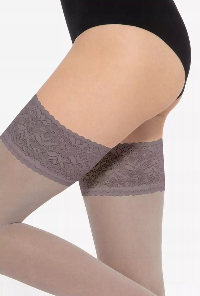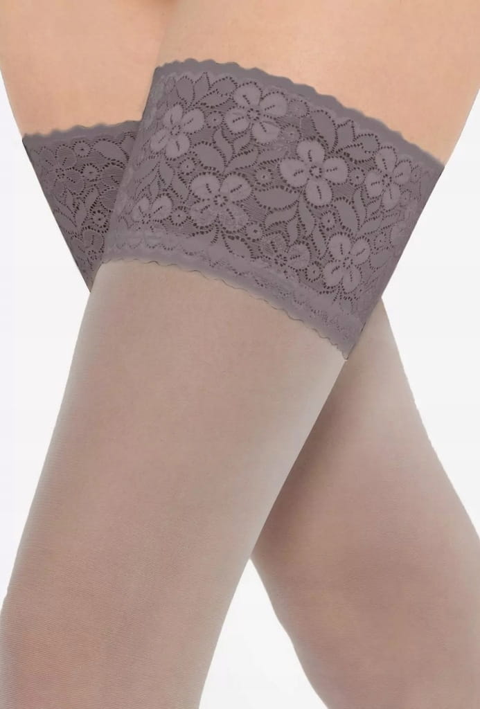 Pończochy damskie samonośne wykonane z przędz typu elastan.