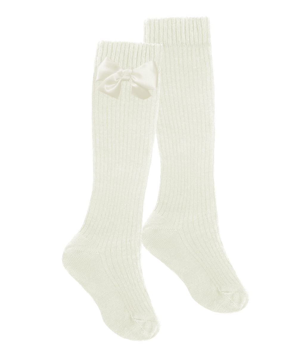 Sówka podkolanówki ekri z kokardą