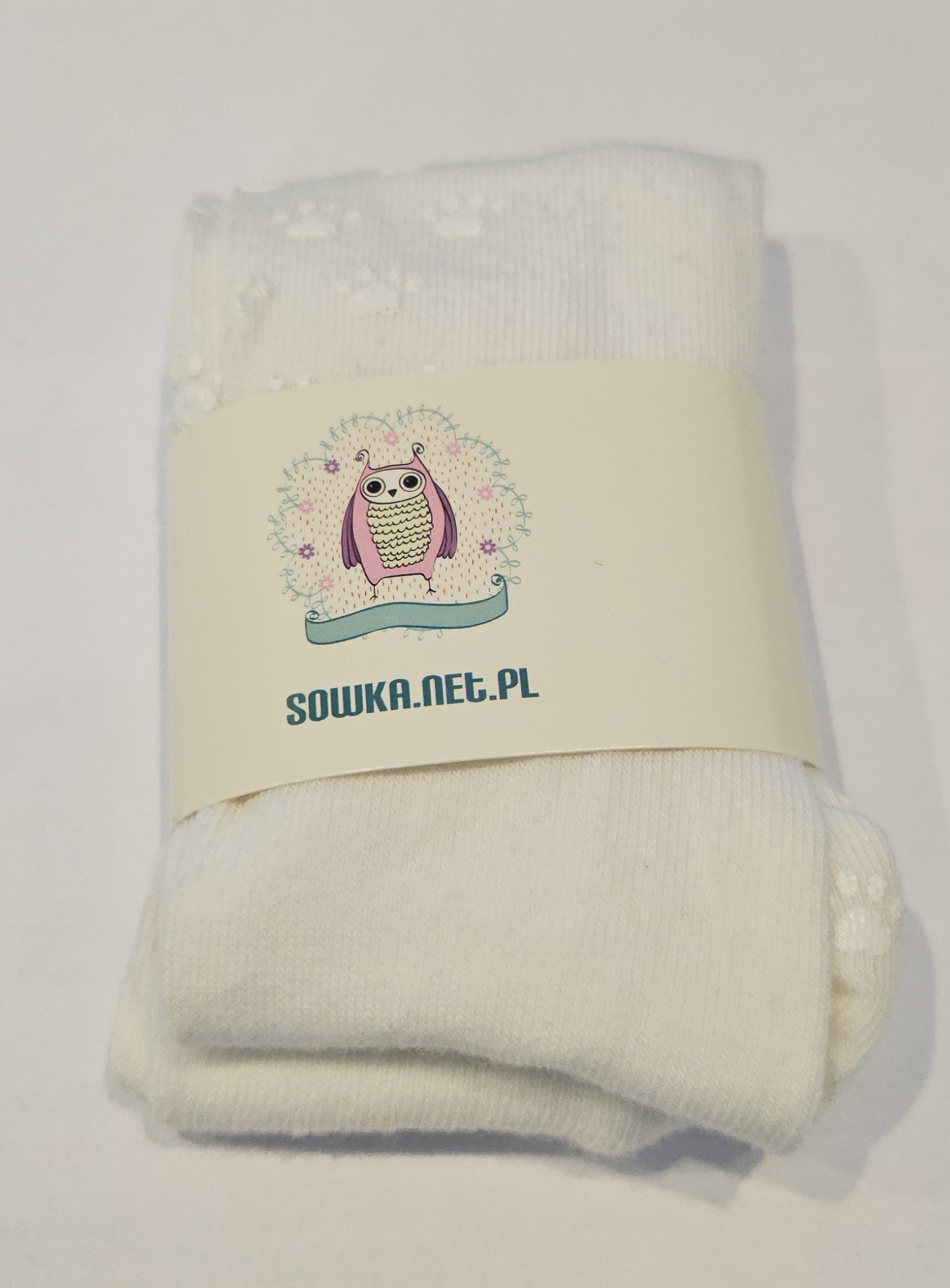 Sówka rajstopki podwójny ABS łapki do raczkowania biały/ekri