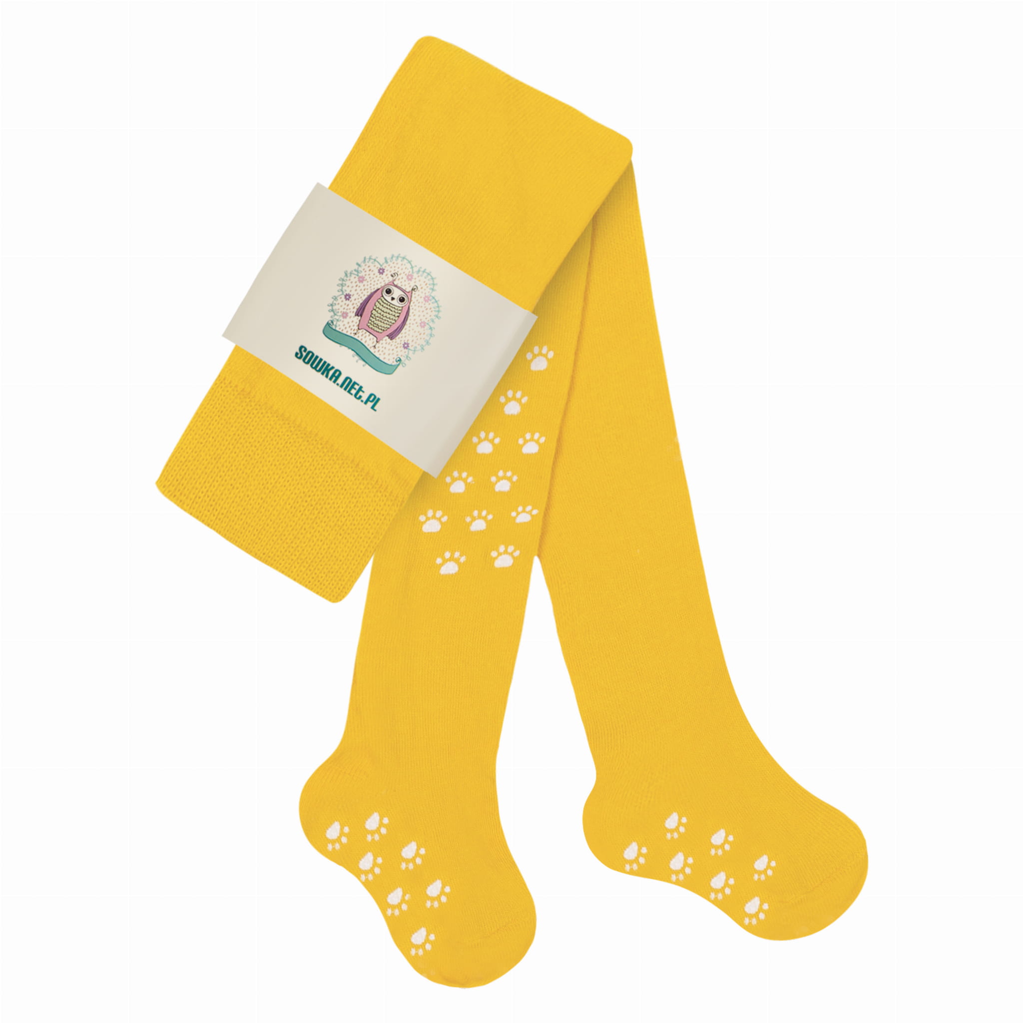 Sówka rajstopki podwójny ABS łapki do raczkowania żółty