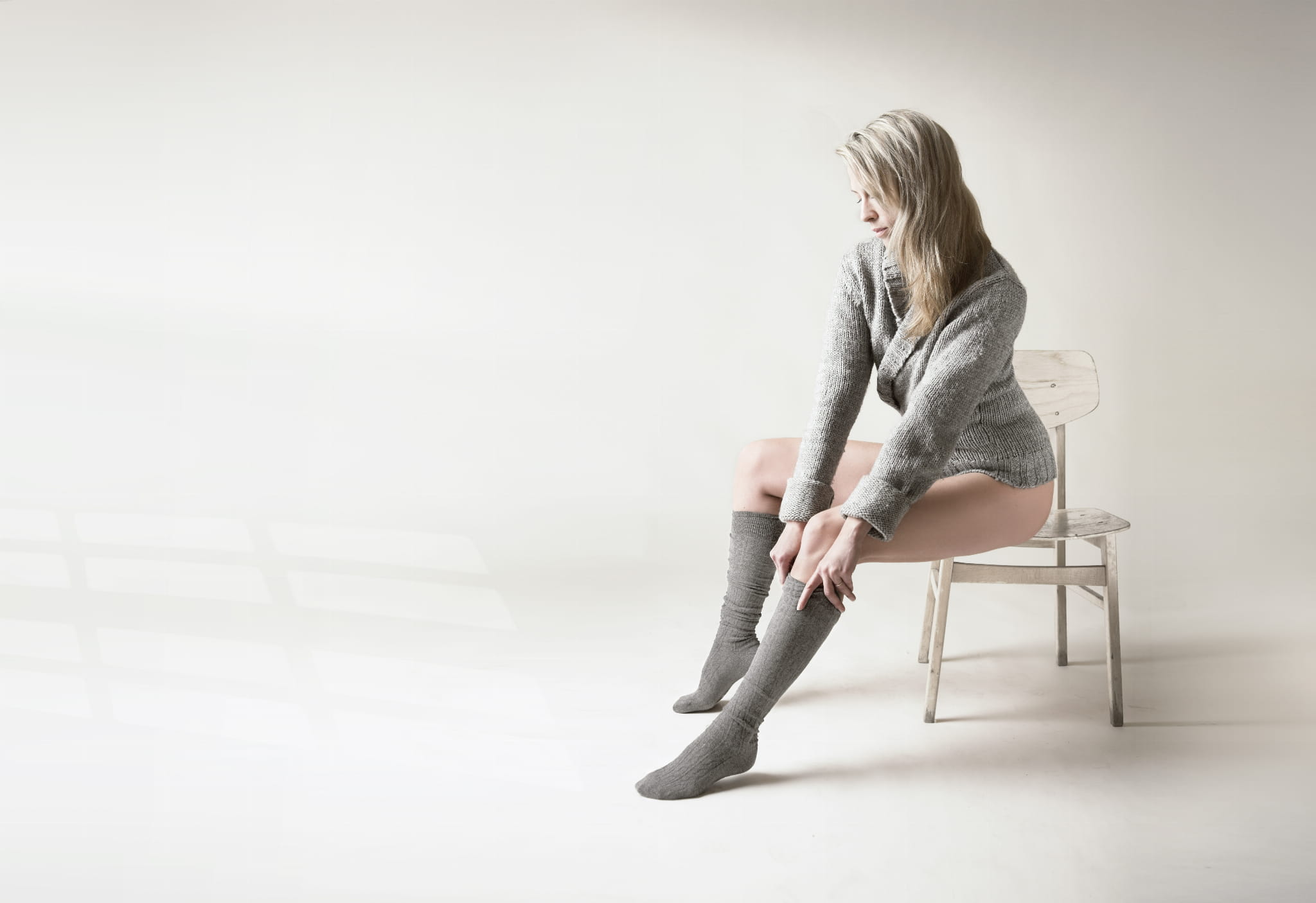 Zakolanówki mają szeroką nieuciskającą gumę. Model gładki, bez wzorów.